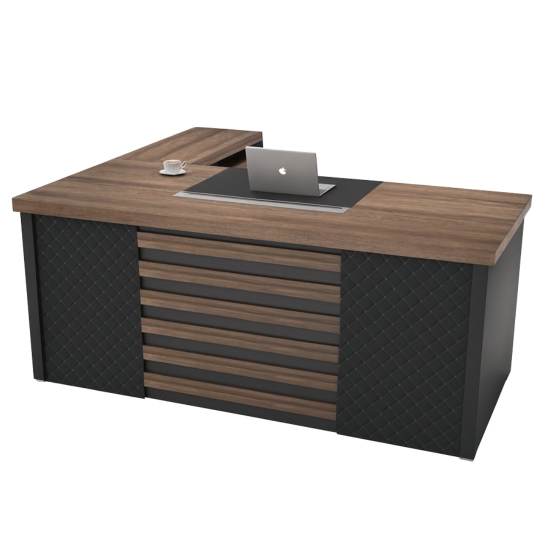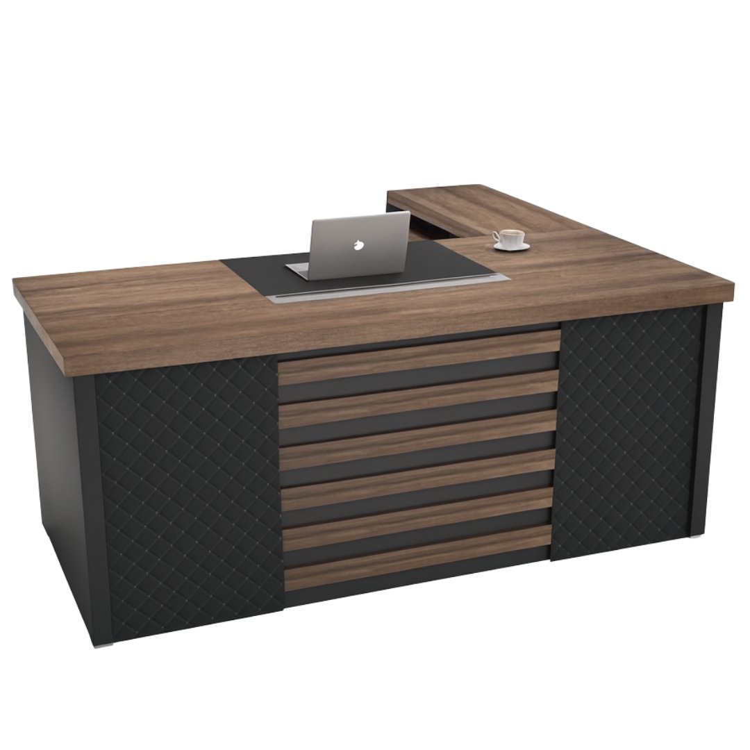 El Escritorio Presidencial de 1.60 metros en acabado wengue y gris es la opción ideal para quienes buscan un mueble imponente, funcional y con presencia ejecutiva. Su diseño robusto y moderno transmite liderazgo, estilo y profesionalismo, convirtiéndolo en el centro perfecto para oficinas gerenciales, despachos privados o espacios corporativos de alto nivel.