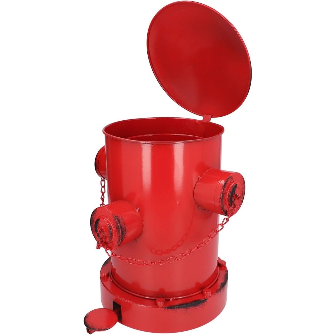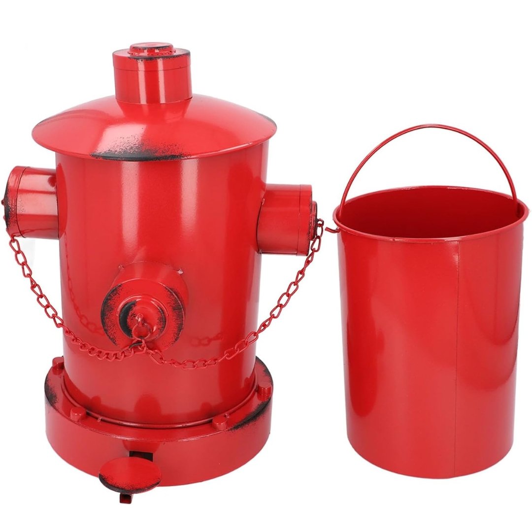 Esta papelera tipo hidrante roja no es solo un bote de basura, es un elemento decorativo con carácter. Su diseño versátil permite utilizarla tanto en el suelo como sobre una mesa, adaptándose fácilmente a distintos espacios y necesidades. Funciona perfectamente como cubo de basura práctico o como pieza decorativa que eleva la estética del entorno.