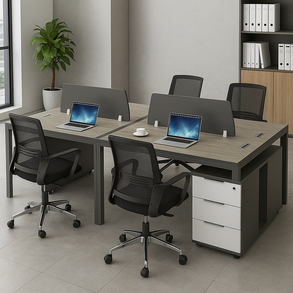 El Bench para 4 puestos en acabado Gris Oscuro y Blanco es la solución perfecta para oficinas modernas que buscan un ambiente productivo, organizado y con diseño profesional. Su estilo contemporáneo y su estructura sólida permiten crear espacios colaborativos sin perder la comodidad ni la funcionalidad que cada usuario necesita.