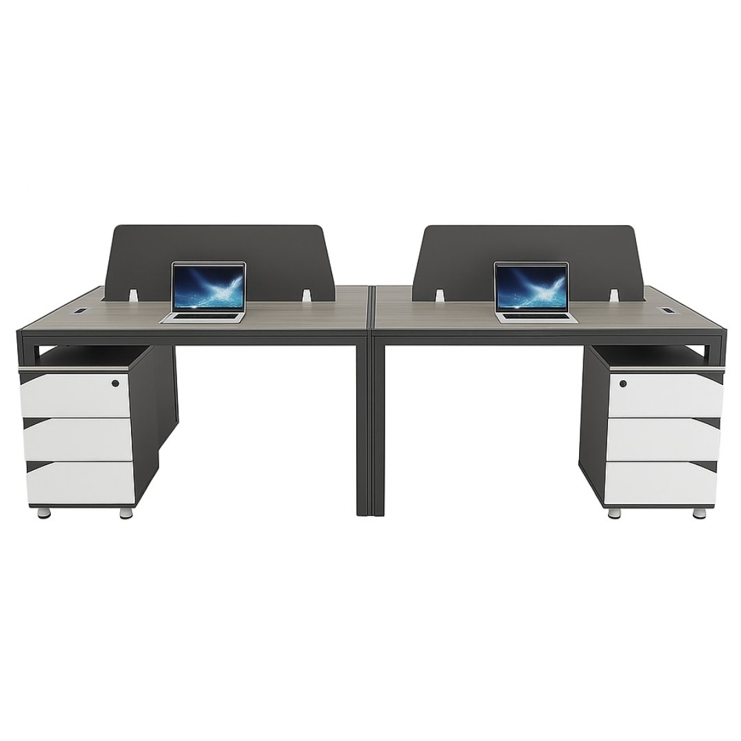 Un puesto de trabajo moderno, resistente y perfecto para zonas colaborativas. Su diseño en Gris Oscuro y Blanco ofrece estilo, amplitud y organización para cualquier oficina.