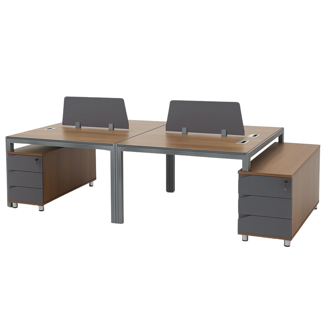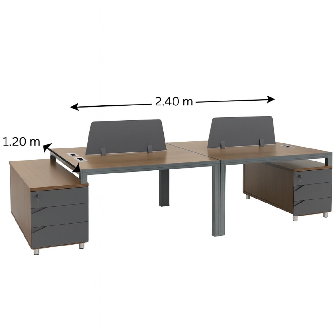 Puesto De Trabajo Colaborativo Bench x4 Color Wengue y Gris