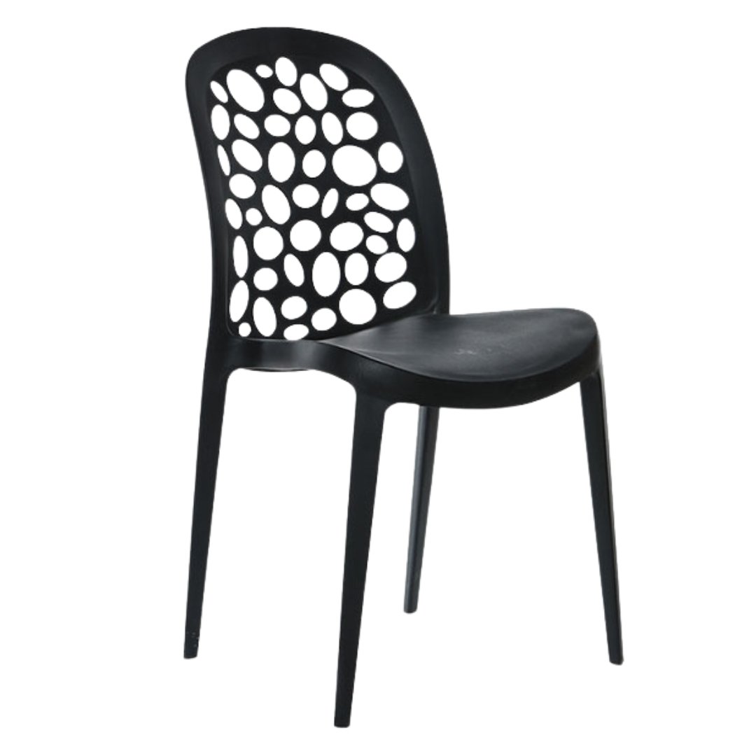 Su diseño calado en el respaldo no solo aporta un aspecto contemporáneo y elegante, sino que también favorece la ventilación, brindando una sensación de frescura y comodidad en cualquier ambiente. Esta característica, junto con su ergonomía, la hace ideal para largas sobremesas en el comedor, reuniones familiares en la terraza, o momentos de descanso en el balcón o el jardín.