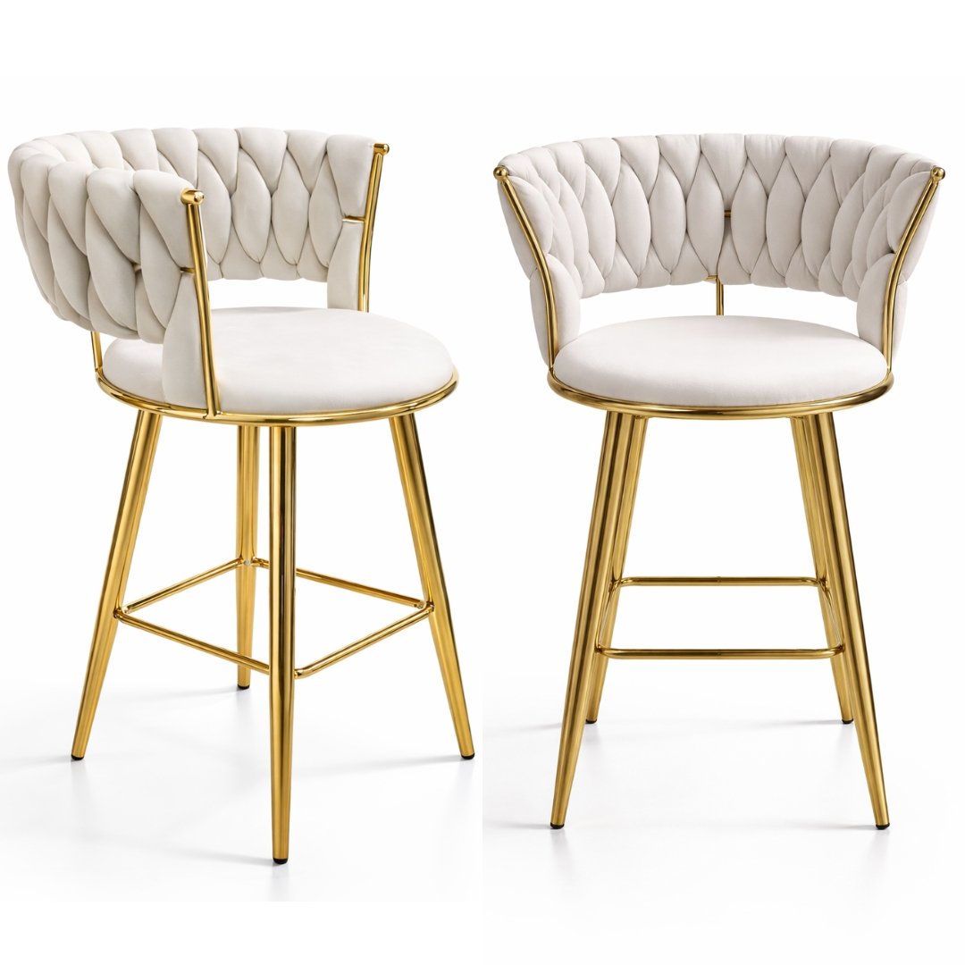 Silla De Bar Moderna De Terciopelo Cannes Base Dorada Beige